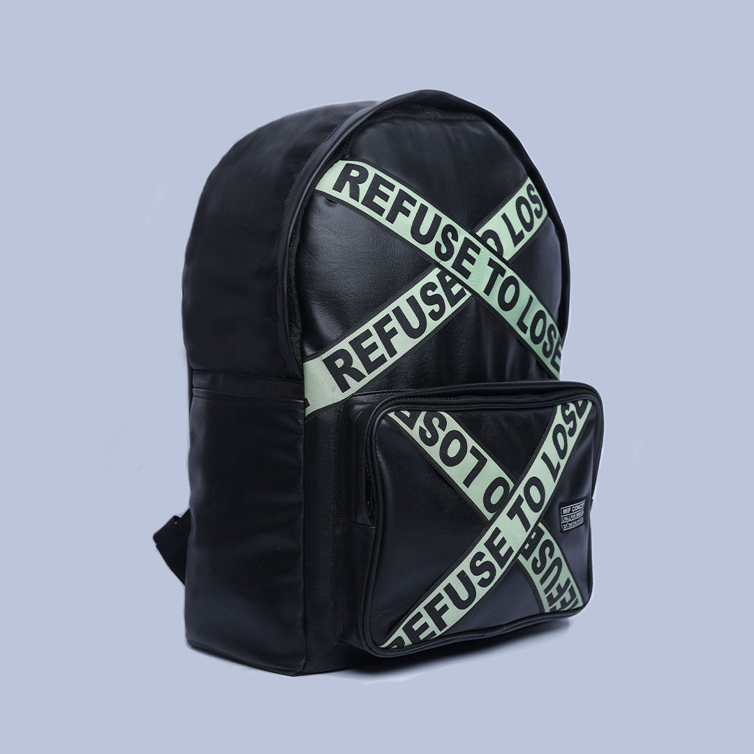 MIF Brute Backpack is both streamlined and practical. Crafted in Lyallpur, it's made from durable smooth black synthetic leather and stitched with the house's logo at the front. The zipped pocket will secure your wallet, keys and headphones, while the straps are padded to reduce the strain on your shoulders.