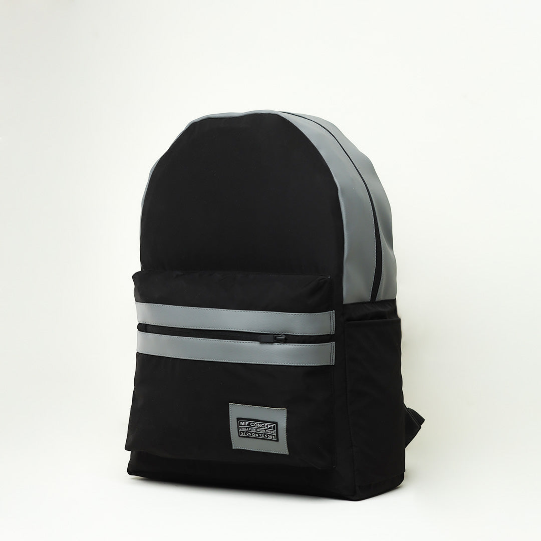 Introducing our sleek and stylish Modern Maven backpack, designed with a modern twist. This backpack features a classic black color with elegant grey faux leather trimmings, combining sophistication with functionality. It boasts a spacious main compartment, providing ample room for all your essentials. Within the main compartment, you'll find a separate laptop space that ensures the safety and protection of your valuable device, keeping it securely in place during your travels or daily commutes. To cater to your need for quick access to smaller items, we've included a front pocket specifically designed to hold items such as your cell phone, wallet, and other valuables. With this pocket conveniently located, you can keep your essentials close at hand while maintaining a neat and organized interior. Additionally, the backpack offers two side slip pockets, allowing you to effortlessly store and access items like a water bottle or umbrella. These pockets are designed to provide easy reach without compromising the overall aesthetic appeal of the bag.