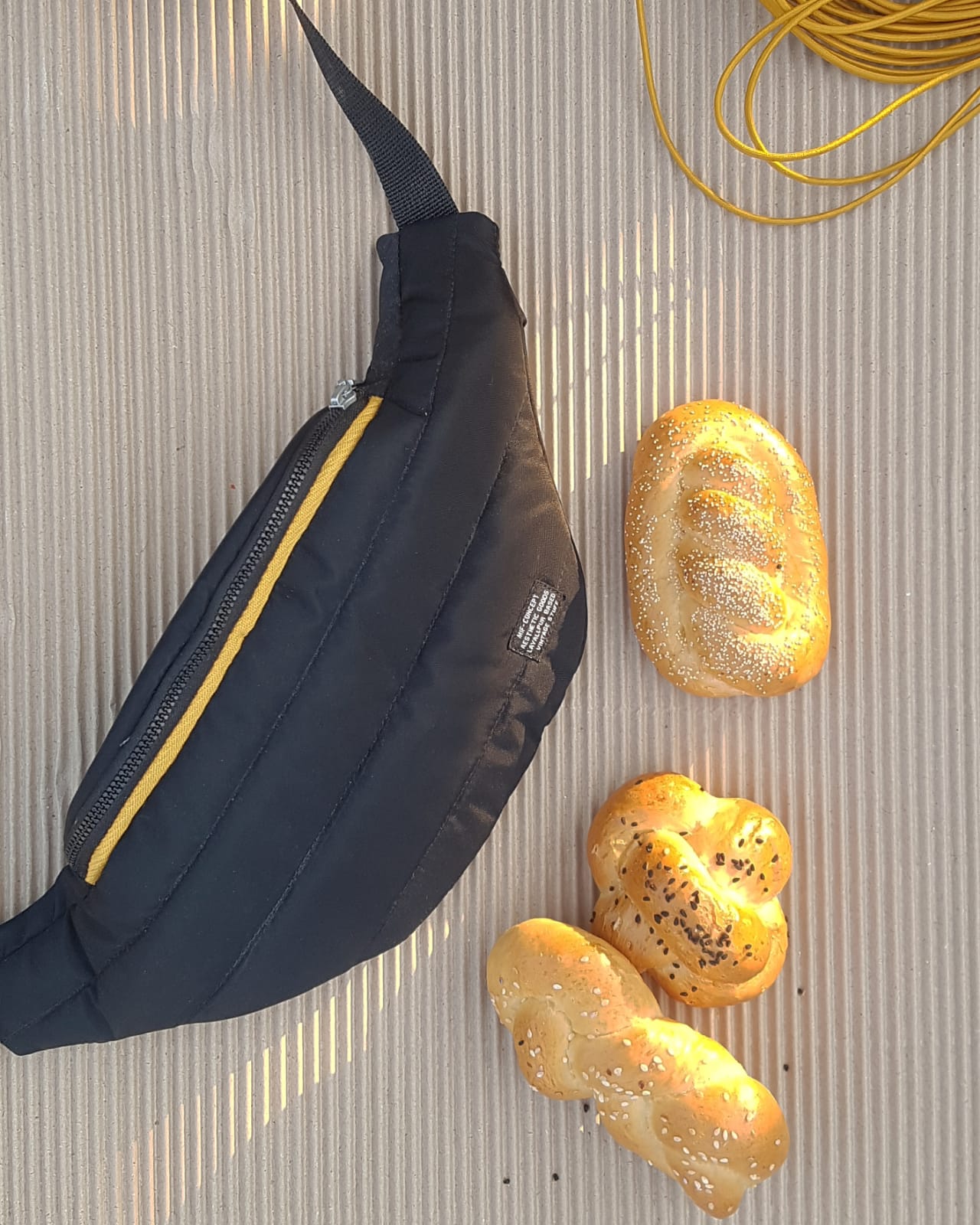 This MIF CONCEPT ''BLACK PACK'' fannypack has been crafted in MIF studio at Layallpur. Stash your phone, card holder and keys in the main compartment. The adjustable strap means it can be worn across the waist, on the shoulder or cross-body.